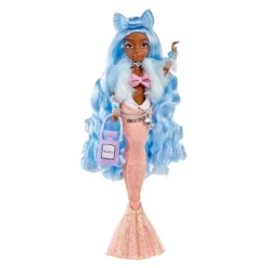 - MERMAID HAIR: Shellnelle™ has beautiful, premium blue hair styled with a large hair bow on the top of her head.